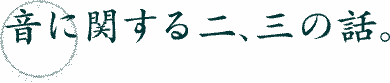 ◆幻聴日記 >>> 音に関する二、三の話 ◆007 >>> MJ97/01 マイ・リスニングルーム ◆006 >>> 以前のコラム ◆005 >>> AUDIO & MUSIC TOP>>> |