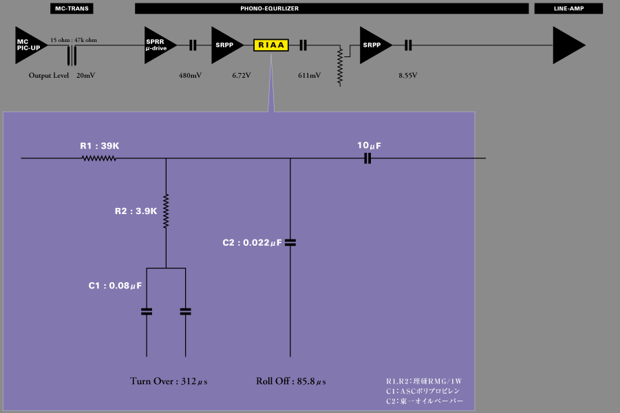 ラインアンプを廃し、単機能フォノイコライザーとして統合。2018.12 ラインアンプをバランスアウトに変更しました。2006.08 フォノイコライザー部分をリニューアルしました。2006.08 |