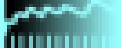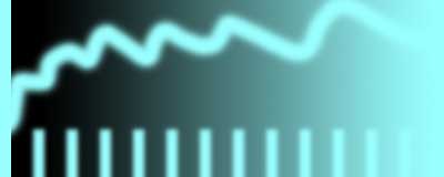 | 以下の画像は、デジタルオーディオにおけるサンプリングとポストフィルタ(LPF)の実体を画像処理のテクニックを用いて疑似化したものです。誤解なきよう補足しますと、正弦波の音声をサインカーブで表すような正確な「モデル化」ではありません。画面上部の自由曲線はあくまでも図形の範疇ですが、下部の等間隔ピッチは音声の粗密波にやや近いイメージと言えるかもしれません。また実際のデジタルオーディオ技術で用いるノイズ・シェーピング技術は反映されていません。 図Aは画素換算でサンプリング値576kHz相当という疑似アナログ波形で、これを原信号とし、図B,C,D,E,Fで各種サンプリングを行います。なお画面下方の等間隔グリッドは19.2kHzの波形ピッチを表しています。 |