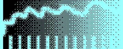 | 図Fは、サンプリング値288kHz相当の1ビット変換をイメージしたものです。左図では白黒2値によるビットマップ画像ですが、LPFを通すことで、アナログに復元されます。なお、現在の高速1bit/DSD変換では、これよりはるかに高密度の2.8MHzでサンプリングしています。 |