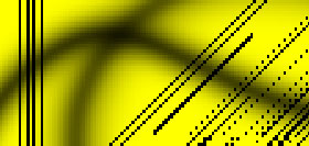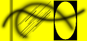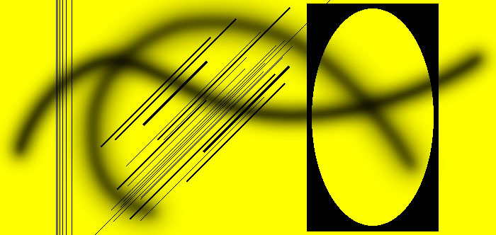 | この画像を「プレフィルタ」を通さずにサンプリングしたのが図Bです。元画像Aでほぼ限界の細さで存在していたヘアーラインの密集部分は、ほとんど破綻状態といえます。図B'はこの状態からフィルタリングしたもので、楕円のジャギーは無くならないし、垂直線の解像度はまったく無惨な状況です。 |