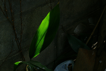 フィルムの銀粒子は、一粒づつ解像できるわけではなく、周囲の粒子を「道連れ」というか相互に影響を与えあいながら反応する。ポジをチェックすると最暗部、最明部とも潰れているような、いないような。階調のある粒子が存在していると感じるその実体はノイズなのか。002でふれた「関連付け」に考えが行きつく。この750×500ピクセルの画像でどれだけ伝えることができるか自信はないけれど、湿気を帯びた空気の匂いがたしかに伝わって来るような気がした。(写真はポジフィルムからスキャニングしたものです)